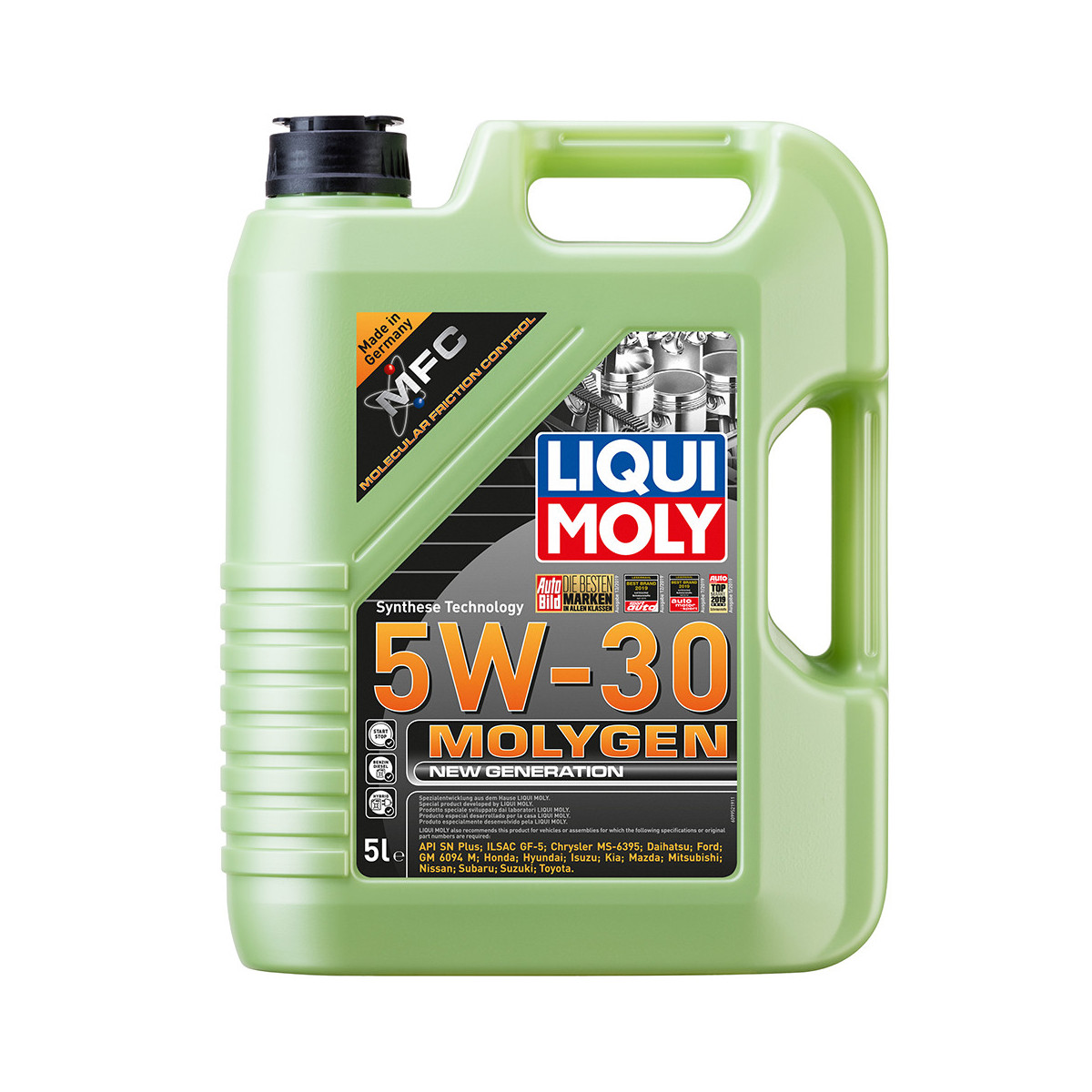 LIQUI MOLY НС-синтетическое моторное масло Molygen New Generation 5W-30, моторное масло на базе HC-синтетической технологии с фирменным антифрикционным пакетом присадок Molygen, созданным на основе новейшей технологии Molecular Friction Control. Оптимально для автомобилей американского и азиатского рынка. Экономит до 5% топлива и существенно продлевает ресурс двигателя. Моторное масло удовлетворяет самым современным спецификациям API SP и ILSAC GF-6A и имеет самый популярнейший класс вязкости для современных автомобилей.