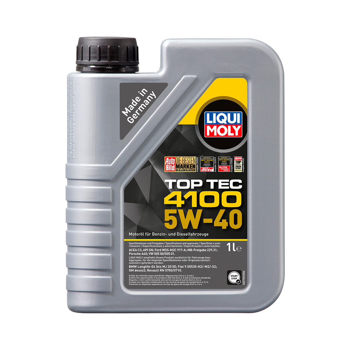 НС-синтетическое моторное масло Top Tec 4100 5W-40 рекомендуется для бензиновых и дизельных двигателей Mercedes-Benz, BMW, Ford (насос-форсуночные дизели), Honda, Fiat, для всех Porsche с оригинальными двигателями.