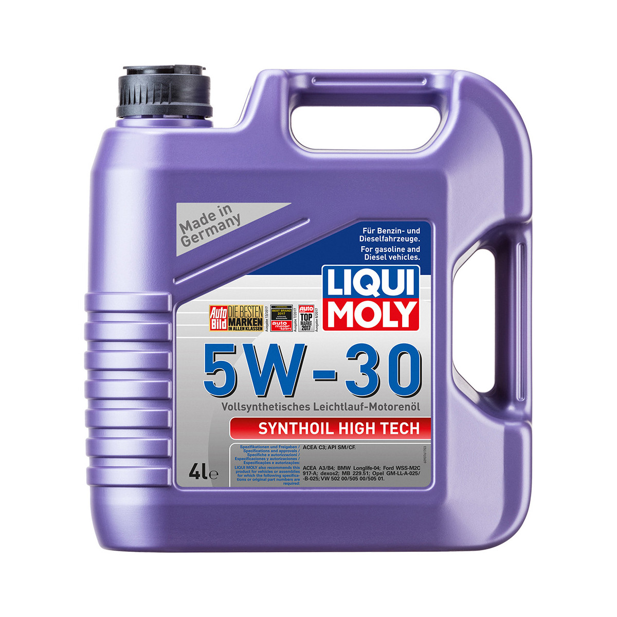 Синтетическое моторное масло Synthoil High Tech 5W-30 100% синтетическое универсальное моторное масло на базе полиальфаолефинов (ПАО) для большинства автомобилей, для которых требования к маслам опираются на международные классификации API и ACEA. Популярнейший класс вязкости для всех современных автомобилей. Благодаря новейшему классу ACEA C3 моторное масло отлично подходит для автомобилей с сажевыми фильтрами.