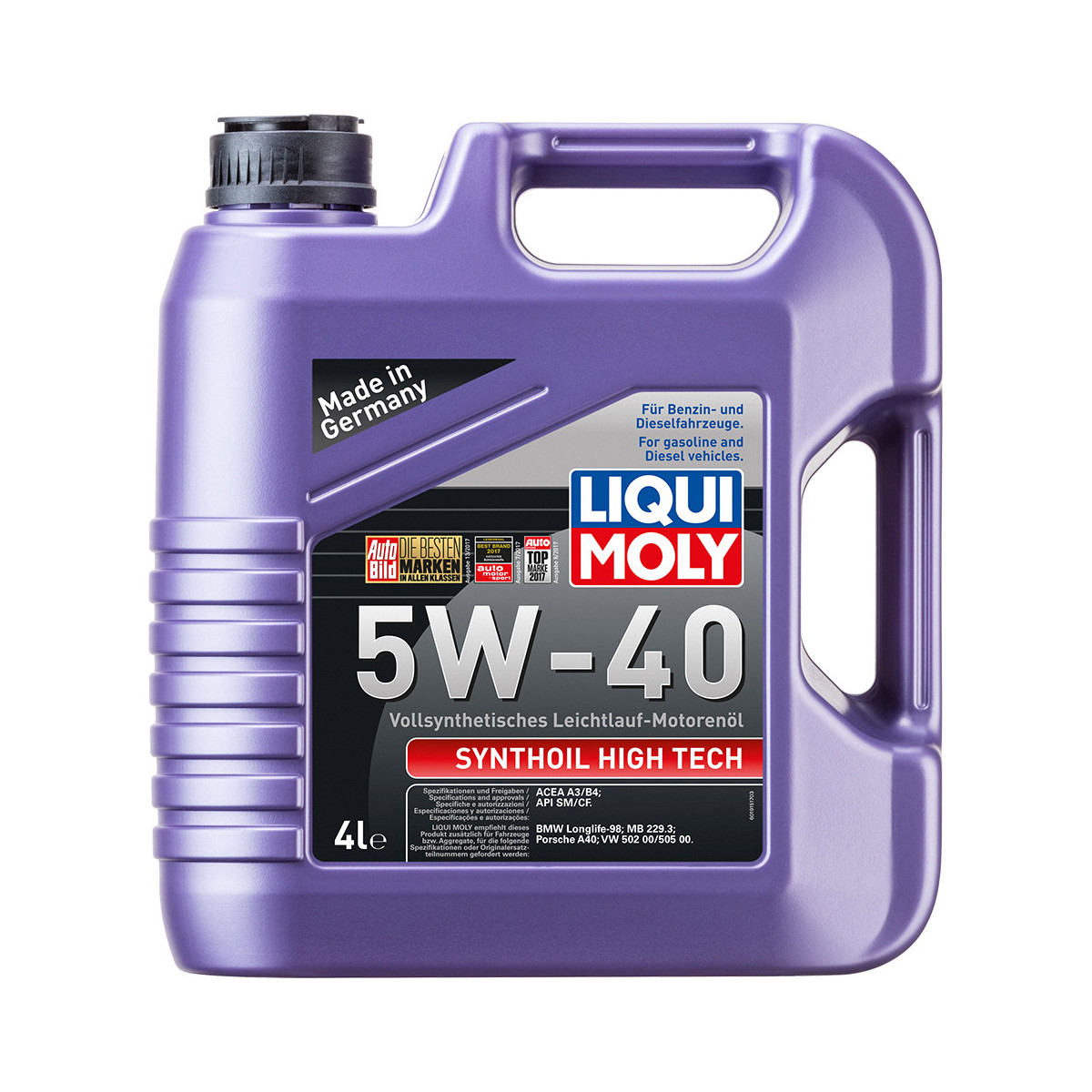 Оригинальное синтетическое моторное масло Liqui Moly Synthoil High Tech 5W-40 100% синтетическое универсальное моторное масло на базе полиальфаолефинов (ПАО) для большинства автомобилей, для которых требования к маслам опираются на международные классификации API и ACEA. За счет оптимальной вязкости масло надежно защищает форсированные много клапанные двигатели.