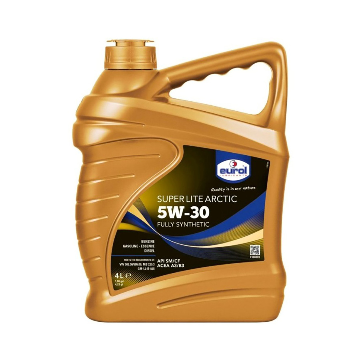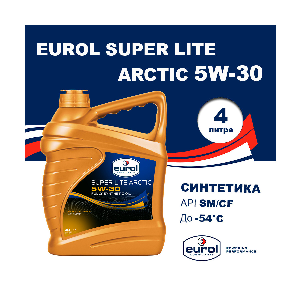 Полностью синтетическое моторное масло (Ester+PAO) Eurol Super Lite ARCTIC 5W-30 для бензиновых, дизельных и LPG двигателей легковых автомобилей и легкого коммерческого транспорта. Обеспечивает легкий запуск двигателя и стабильную масляную пленку при экстремально низких температурах, температура застывания -54 °C. Содержит уникальный пакет присадок, обеспечивающий высокую защиту от износа, коррозии и окисления, а также исключительную чистоту деталей двигателя. Обладает минимальной испаряемостью и стабильностью характеристик на всем сроке использования. Подходит для круглогодичного использования, включая жаркие регионы.