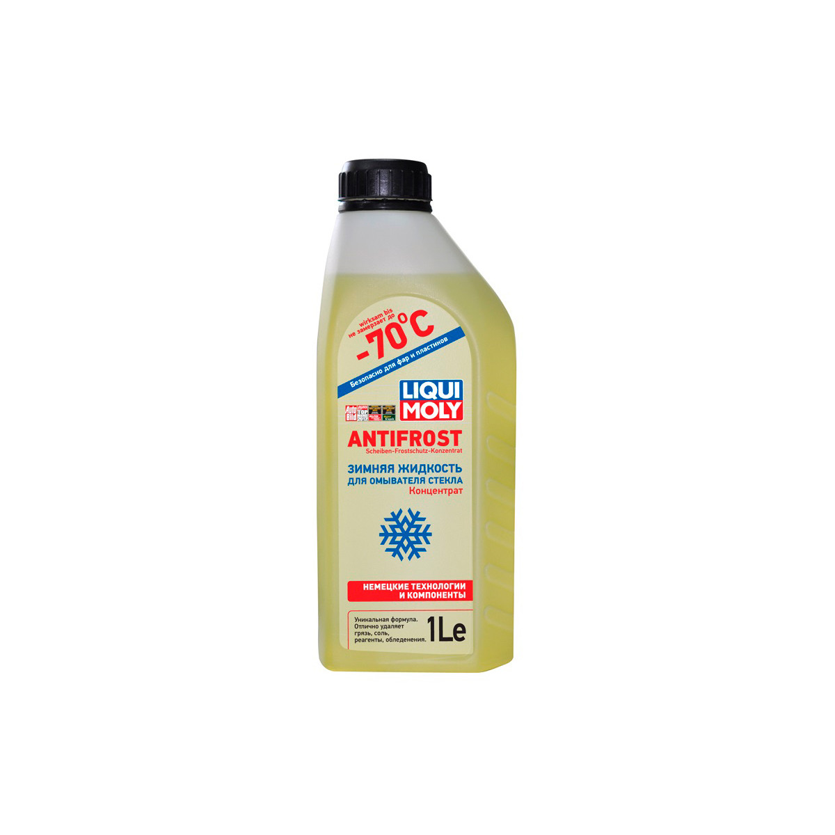 Стеклоомывающая жидкость концентрат ANTIFROST Scheiben-Frostschutz Konzentrat -70С изготавливается по рецептуре LIQUI MOLY GmbH из эксклюзивных немецких компонентов. Предназначена для очистки переднего ветрового стекла и стёкол фар от снега, льда, антигололёдных реагентов, копоти, соли и грязи. Не оставляет разводов и следов на поверхностях после прохода стеклоочистителей и высыхания. Обладает приятным запахом Дыни.