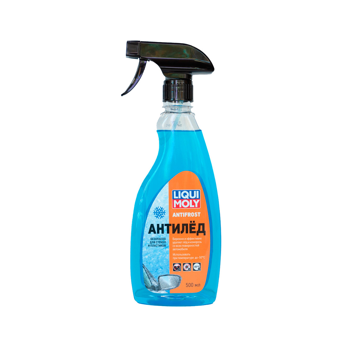 Продуктом удобно пользоваться благодаря упаковке с триггером. Нет необходимости мерзнуть на улице при отрицательных температурах, очищая стекла. Достаточно просто нанести размораживатель на обледеневшую поверхность и жидкость все сделает за вас. Безвредна для лакокрасочных покрытий, резине и пластиковых деталей автомобиля.